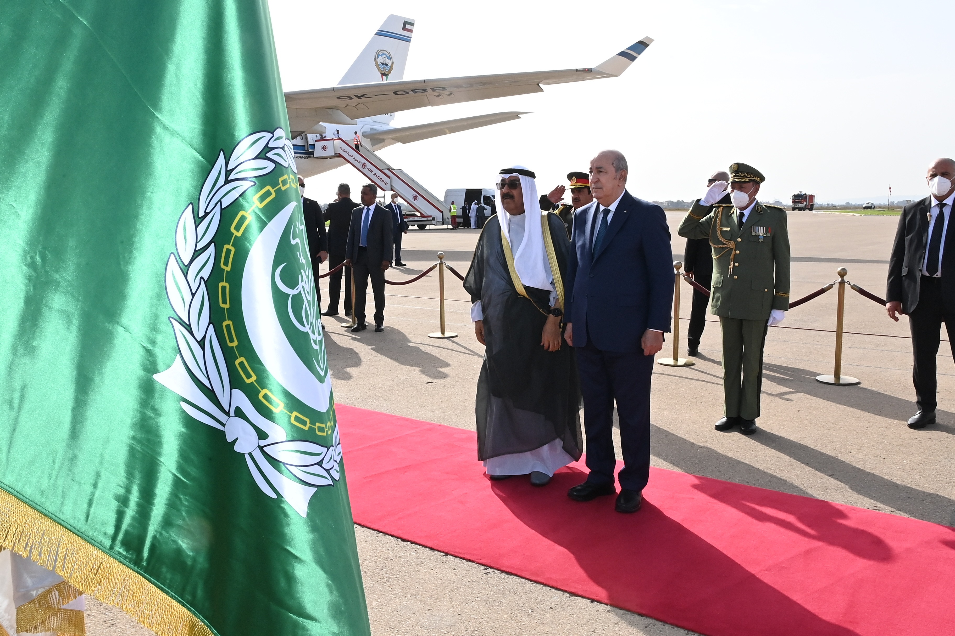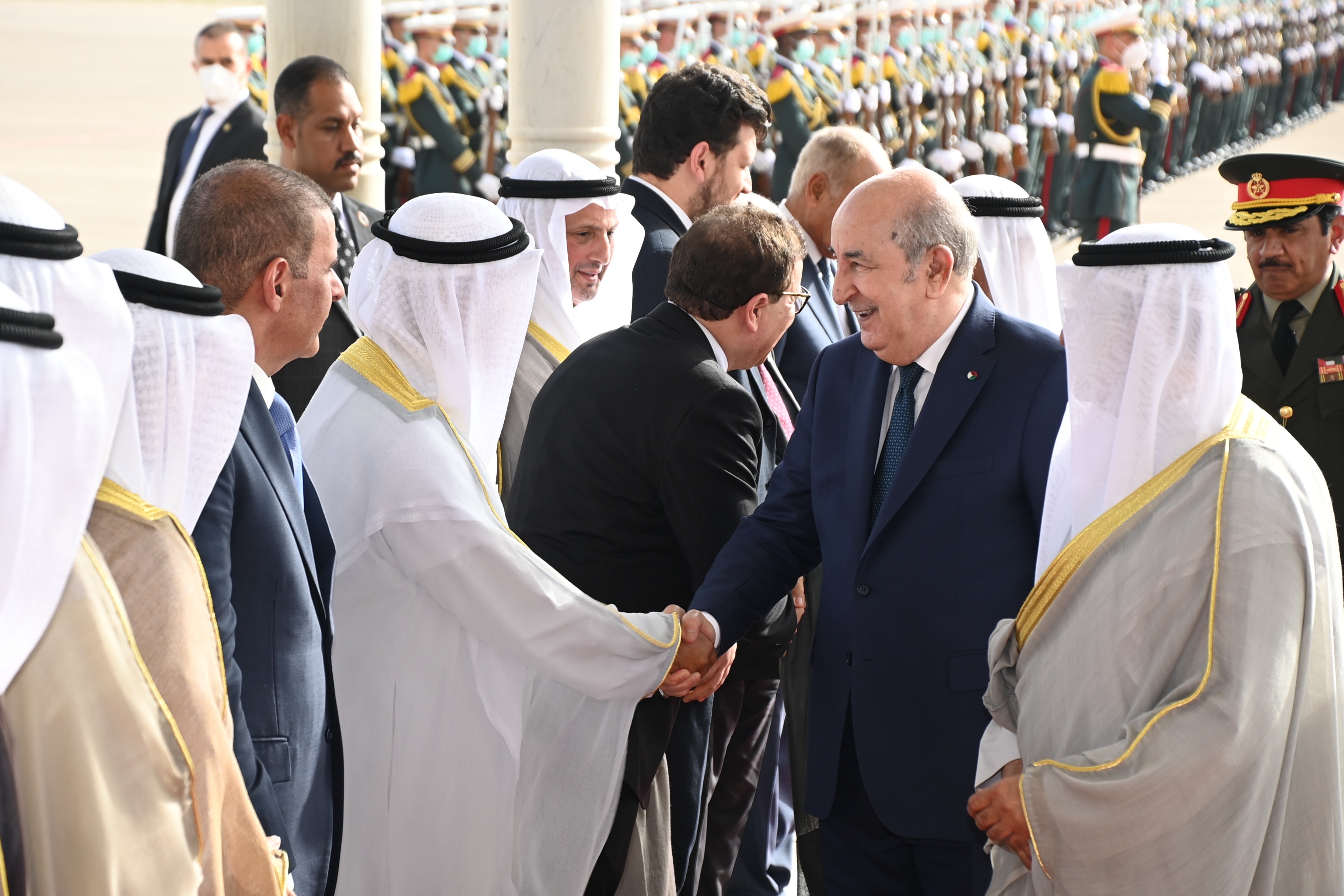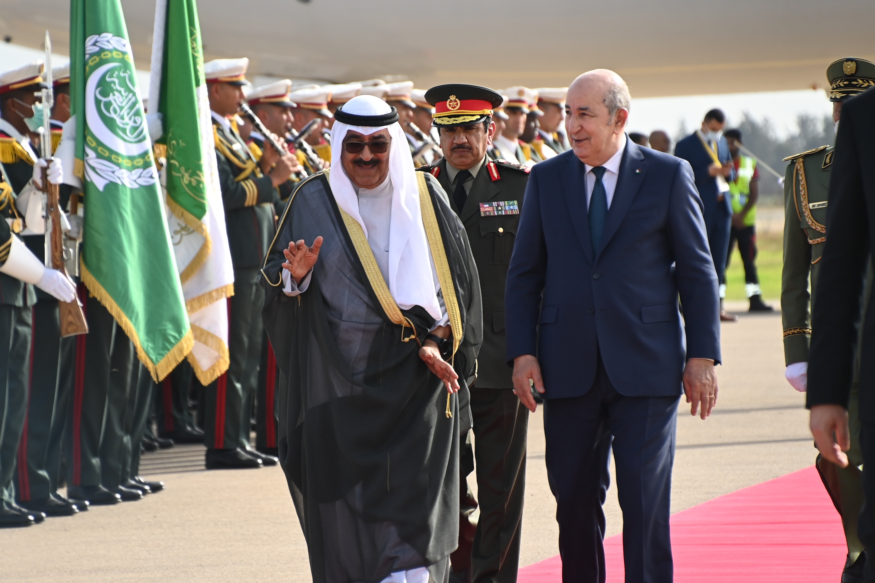 استقبال رئيس الجمهورية السيد عبد المجيد تبون الشيخ مشعل الأحمد الجابر الصباح ولي العهد دولة الكويت